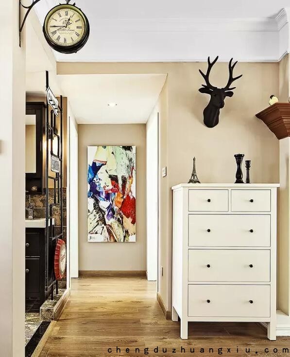 风格有点混搭,视觉中心在过道尽头的挂画上,透露着主人随性,自然的生活性格。