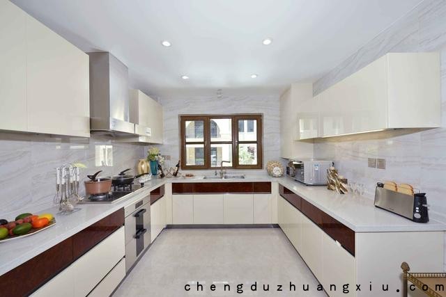 2、厨房越小越要有足够的台面操作空间,U型厨房设计可以最大限度的增加台面面积